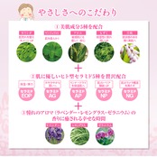 女性らしさの中にもスッキリしとした気品高き香りが広がる、愛されアロマを使用しました。