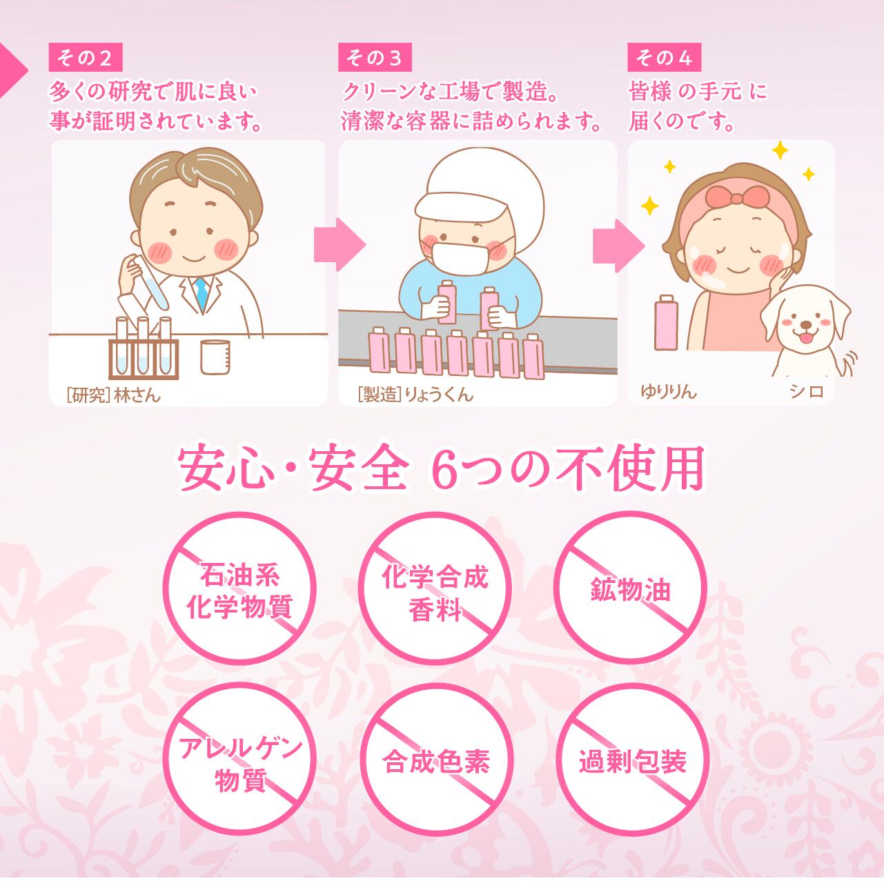 たっぷりローションを塗布した後に気になるところから、一滴一滴指先で優しく塗布してください。次に両手で、優しく包むようにしてお顔全体に浸透させます。毎日使うごとに、肌のキメが美しく毛穴もきゅっとしまって、自信たっぷりのお肌に変化していきます。美しくなる肌へ、ぜひスキンケアを楽しんでいただければと思います。